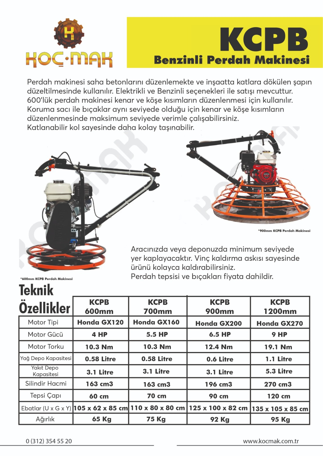 Perdah makinesi saha betonlarını düzenlemekte ve inşaatta katlara dökülen şapın düzeltilmesinde kullanılır. Elektrikli ve Benzinli seçenekleri ile satışı mevcuttur. Katlanabilir kol sayesinde daha kolay taşınabilir. Aracınızda veya deponuzda minimum seviyede yer kaplayacaktır. Vinç kaldırma askısı sayesinde ürünü kolayca kaldırabilirsiniz.